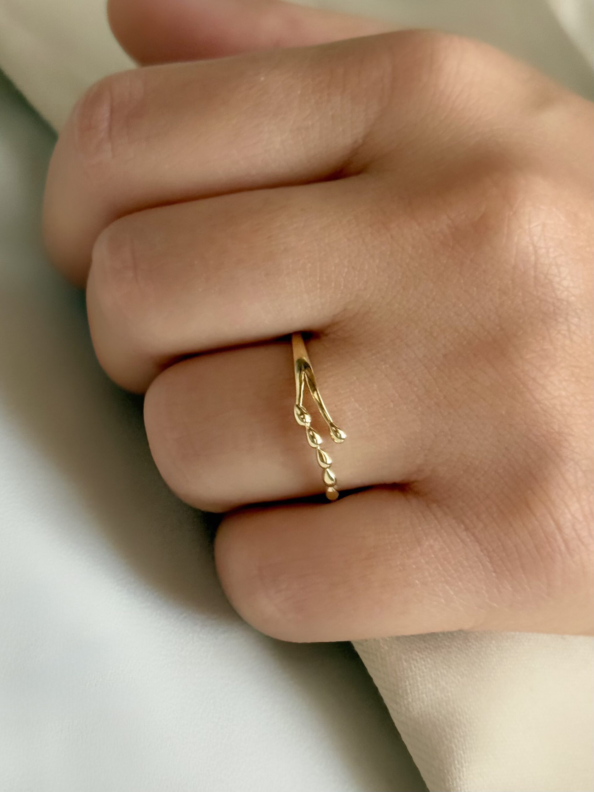 این انگشتر طلای طرح اشکی با خطوط نرم و تراش ظریف، درخشی چشم‌نواز و استایلی لوکس ارائه می‌دهد. فرم اشک، نماد احساسات عمیق و زیبایی لطیف است و در کنار صیقل دقیق بدنه، جلوه‌ای ماندگار و حرفه‌ای ایجاد می‌کند. این طراحی نمادین، انتخابی ایده‌آل برای کسانی است که به ظرافت و معنای درونی زیورآلات اهمیت می‌دهند.