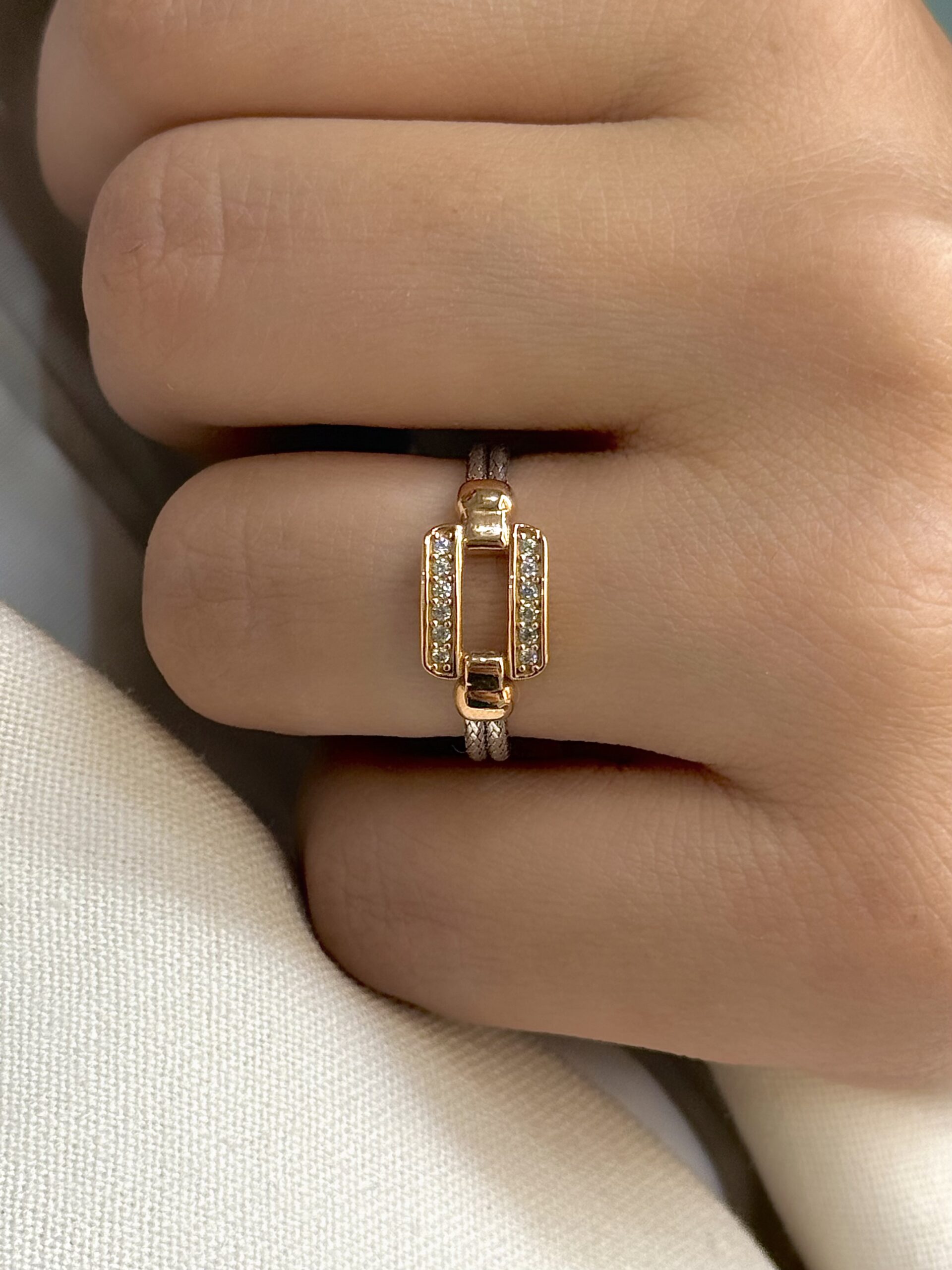 انگشتر بند نگیندار با ترکیب خاص فلز رزگلد و بند استیل بافتدار، جلوهای مدرن و متفاوت ایجاد میکند. قفل تزئینی با نگینهای ریز درخشان، نماد استحکام و ارزش لحظات گرانبهاست و ظاهری لوکس و چشمنواز به این محصول بخشیده است. انتخابی ایدهآل برای بانوانی که به استایل خاص، جزئیات متمایز و درخشش ظریف اهمیت میدهند.