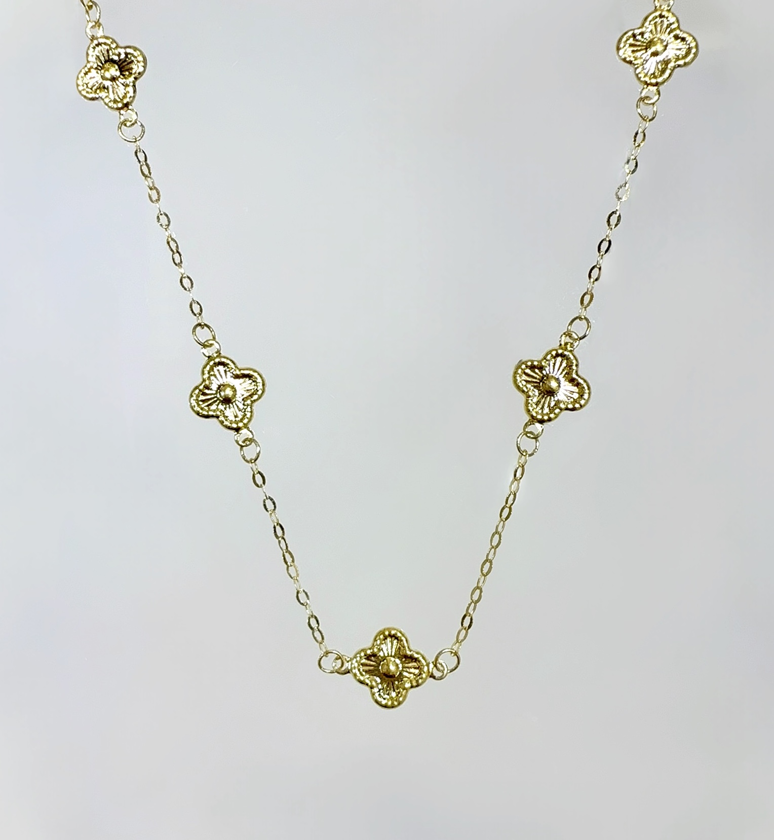 این گردنبند طلا با طراحی مینیمال و شیک، با ۱۲ عدد گل ونکلیف، جلوهای ماندگار و استایل خاصی به استایل شما میبخشد. جنس طلای زرد با بافت ظریف زنجیر و نگینهای گلمانند، نمادی از زیبایی طبیعی و عشق بیپایان است که با الهام از سبک کلاسیک، هماهنگی بینظیری با هر لباسی ایجاد میکند. جزئیات طراحی دقیق و درخشش ملایم آن، این جواهر را به گزینهای لوکس و ایدهآل برای هدیه یا استفاده روزمره تبدیل کرده است. با طول مناسب و وزن سبک، این گردنبند راحتی و ظرافت را بههمراه دارد و احساس خاص بودن را در شما زنده میکند.